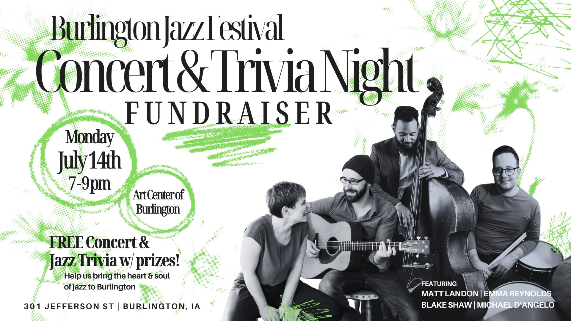 Help raise funds for Greater Burlington's inaugural Burlington Jazz Festival (July 25 & 26) with this free jazz concert and trivia night!
