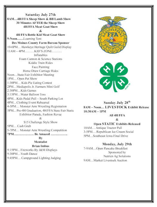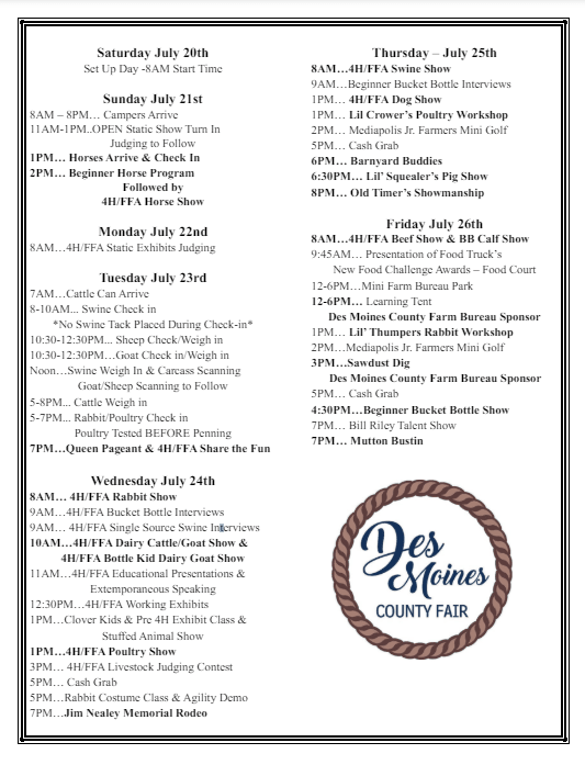 For all the fair news and events, follow the Des Moines County Fair on Facebook, and visit: