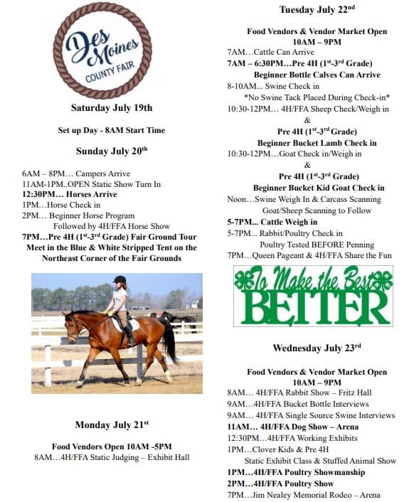 For all the fair news and events, follow the Des Moines County Fair on Facebook, and visit: