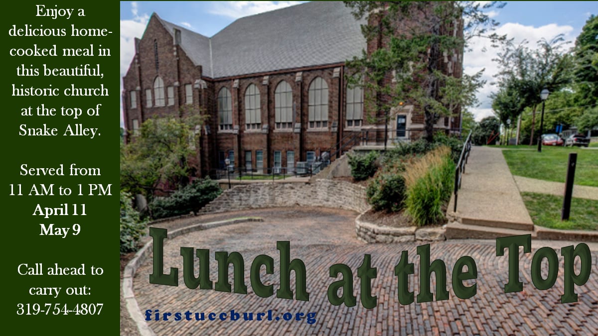 Enjoy a homemade meal in the friendly social hall of this beautiful, historic church at the top of Snake Alley - or call ahead for carry-out.