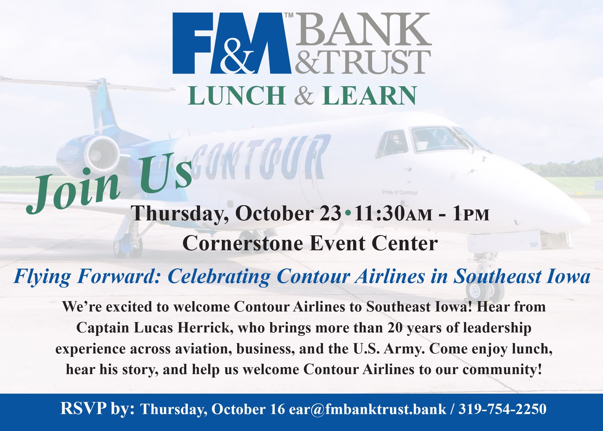 Please RSVP by Thursday, October 16: email ear@fmbanktrust.bank or call